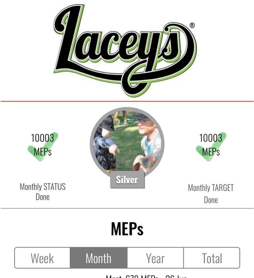 Rory decided that he would chase the Joe Rogan challenge/goal of 10,000 Myzone effort points (MEPS) in 1 month. MEPS are achieved with each minute of training completed in certain heart rate (HR) zones. The scoring looks a bit like this