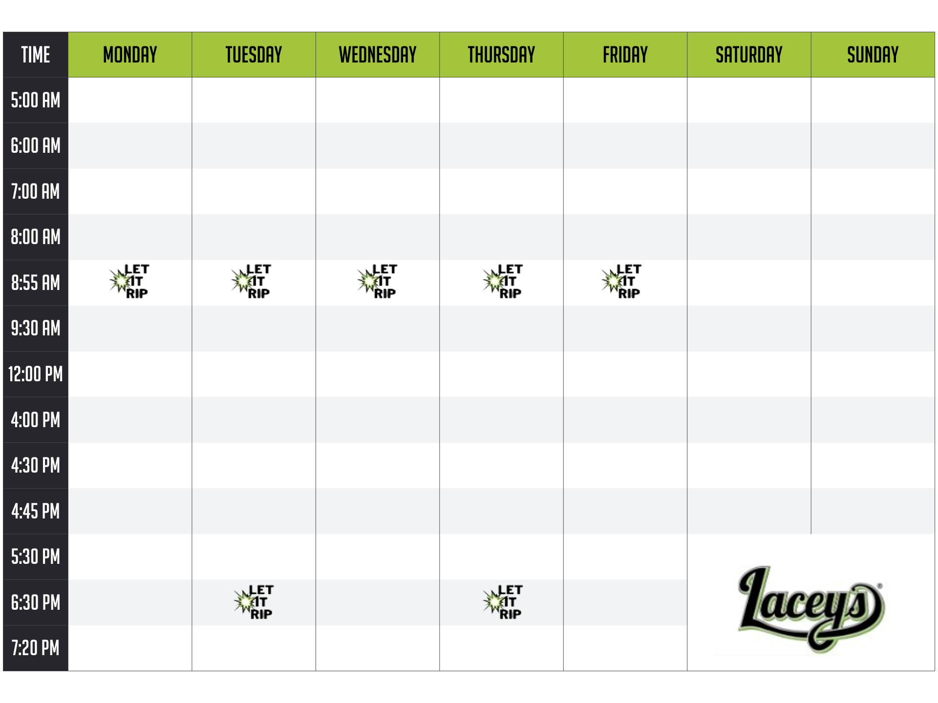 Our Let It Rip sessions are designed to deliver maximum results in a short amount of time, making it easier to stay committed to your fitness goals. Whether you're looking to squeeze in a workout during your lunch break or need a quick fitness boost, Let It Rip offers a powerful and efficient way to stay in shape.