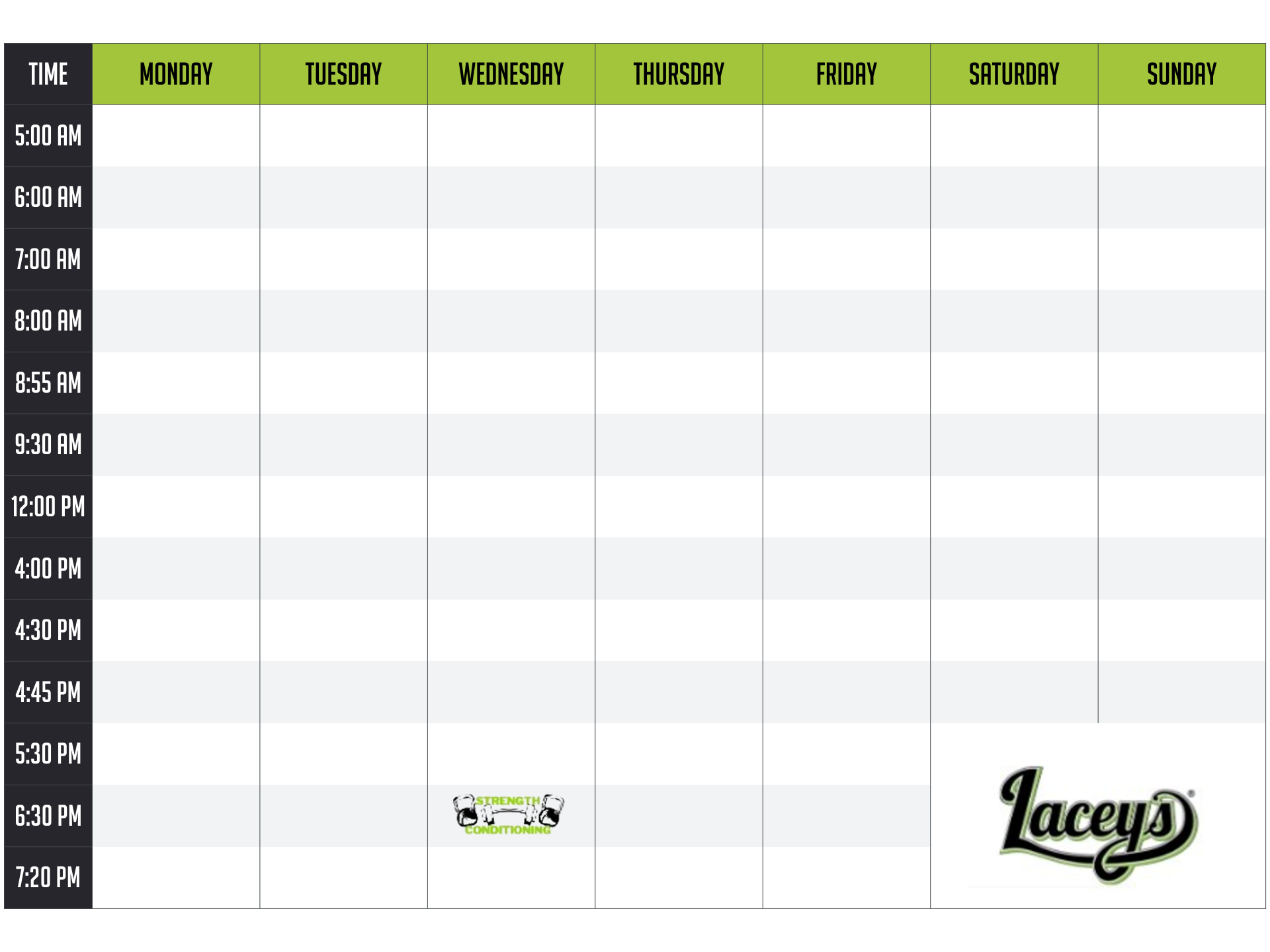 Whether you're looking to improve your athletic performance, increase strength, or enhance your overall fitness, our Strength & Conditioning classes offer a comprehensive approach to achieving your goals. Join us and experience the benefits of targeted, effective weight training in a supportive and motivating environment.